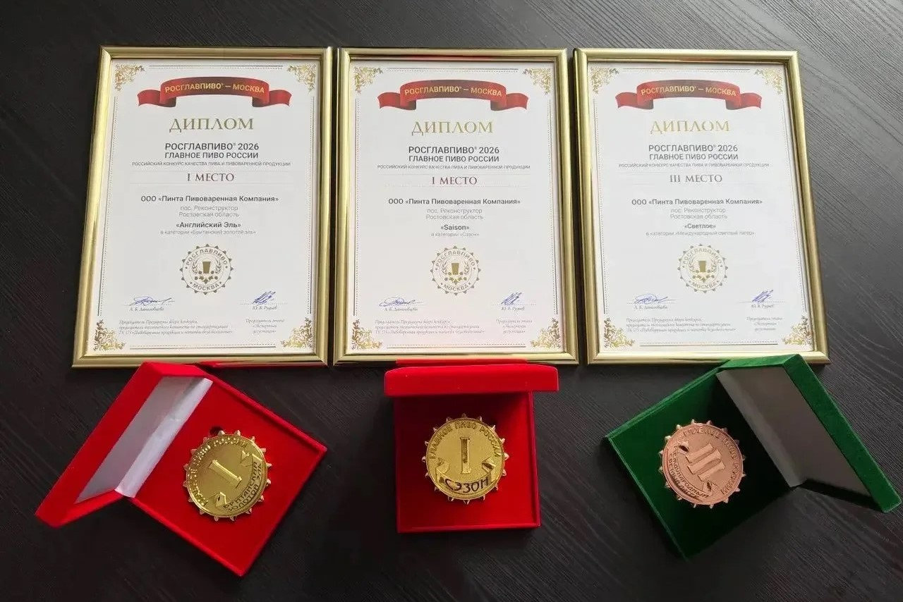 Донское предприятие ООО «Пинта Пивоваренная Компания» (Аксайский район, п. Реконструктор) получила три призовые награды по итогам заседания международного дегустационного экспертного жюри восьмого российского конкурса качества пива и пивоваренной продукции «РОСГЛАВПИВО® – Главное Пиво России».