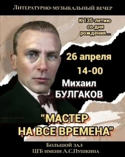 26 апреля в 14-00 часов в большом зале Пушкинской библиотеки состоится литературно-музыкальный вечер «Мастер на все времена»,