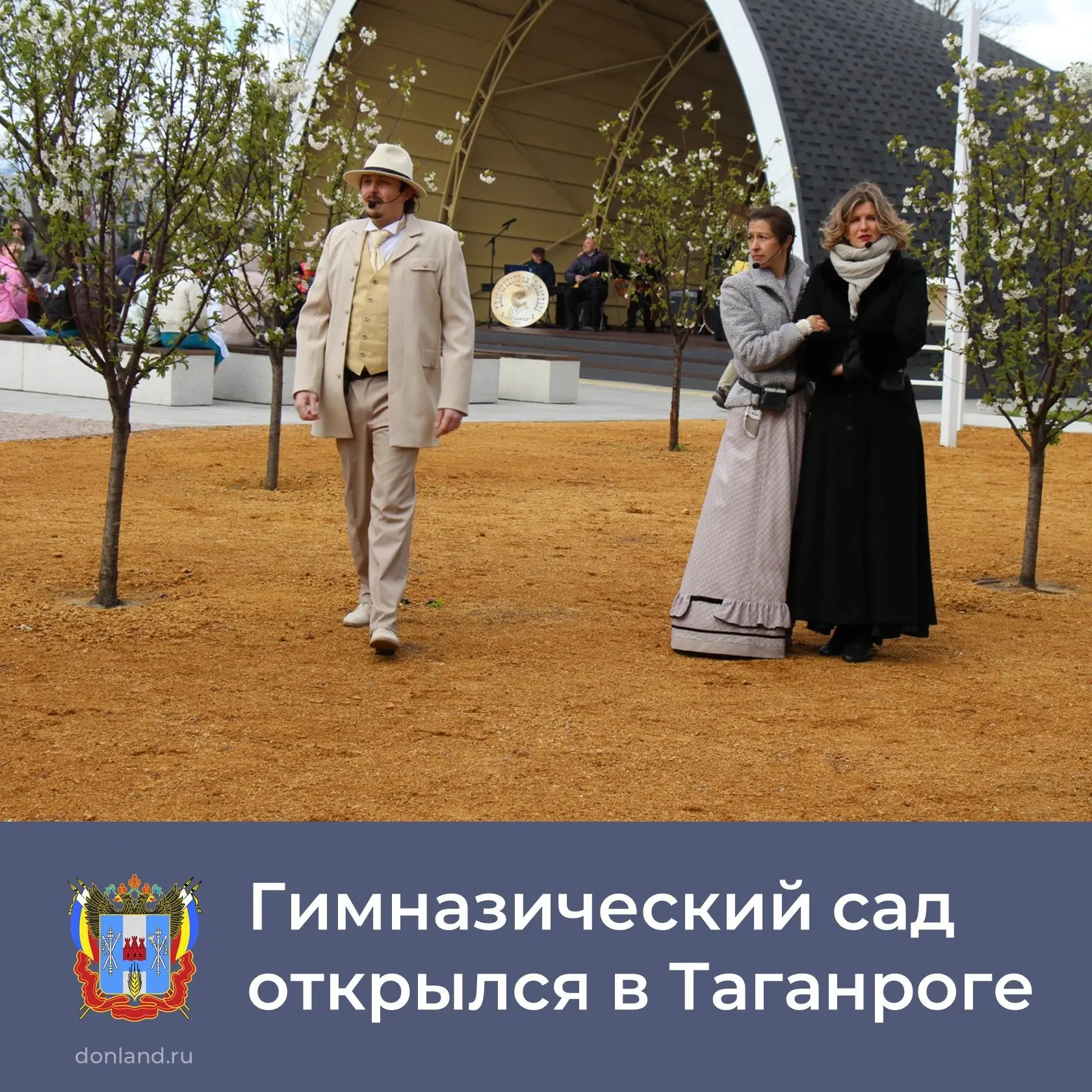 На территории сада смонтировали сцену, устроили наружное освещение, автополив, систему видеонаблюдения, сделали дорожное покрытие, ограждение, установили малые архитектурные формы.