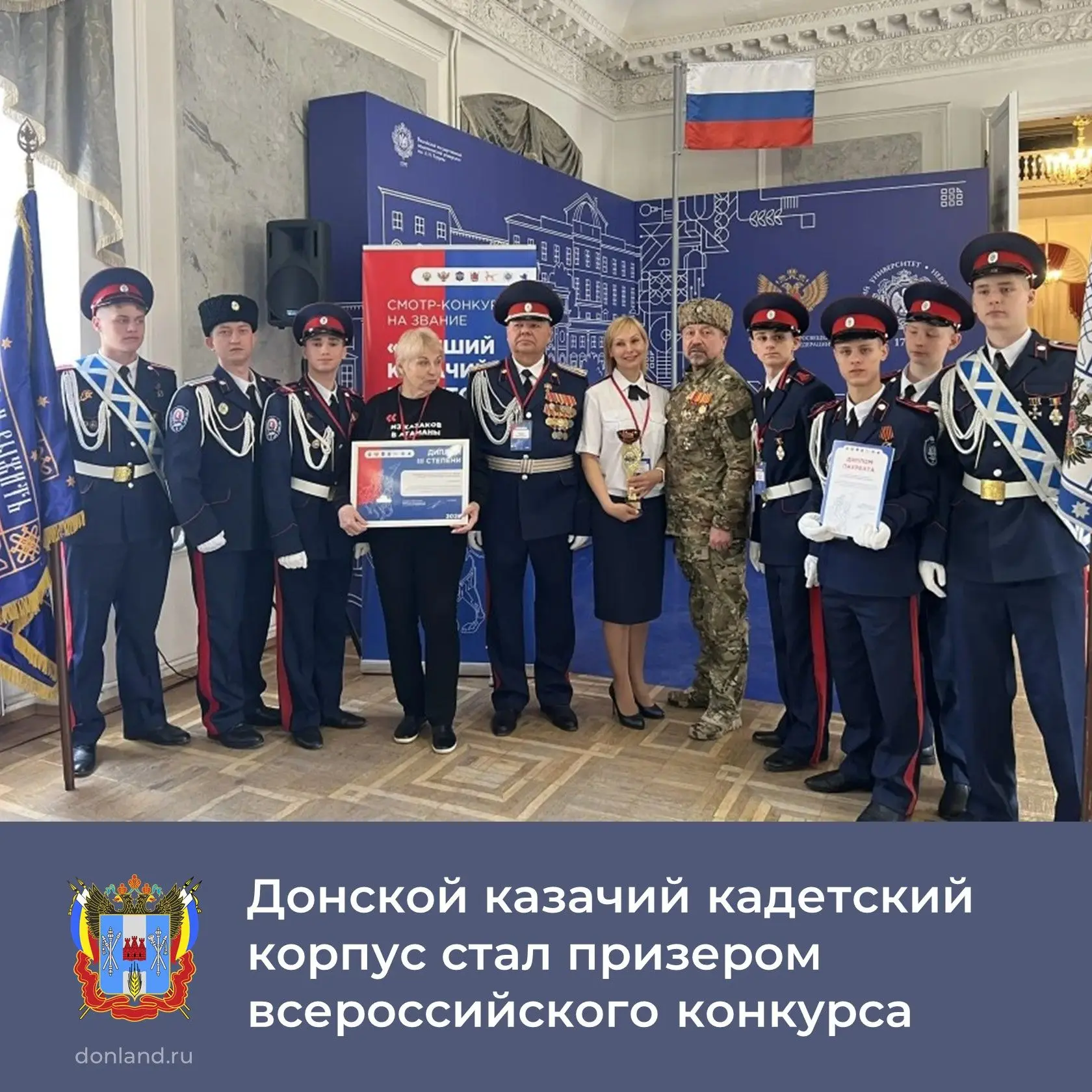 Донской императора Александра III казачий кадетский корпус по итогам конкурса занял третье призовое место. Ребята продемонстрировали глубокое знание отечественной истории, уважительное отношение к традициям российского казачества и твёрдую приверженность духовнонравственным ценностям.