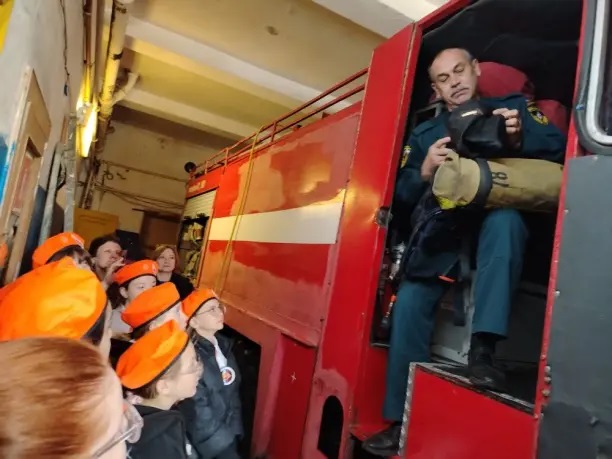 Сотрудники пожарной части провели экскурсию по зданию, показали караульные помещения, помещение для отдыха.