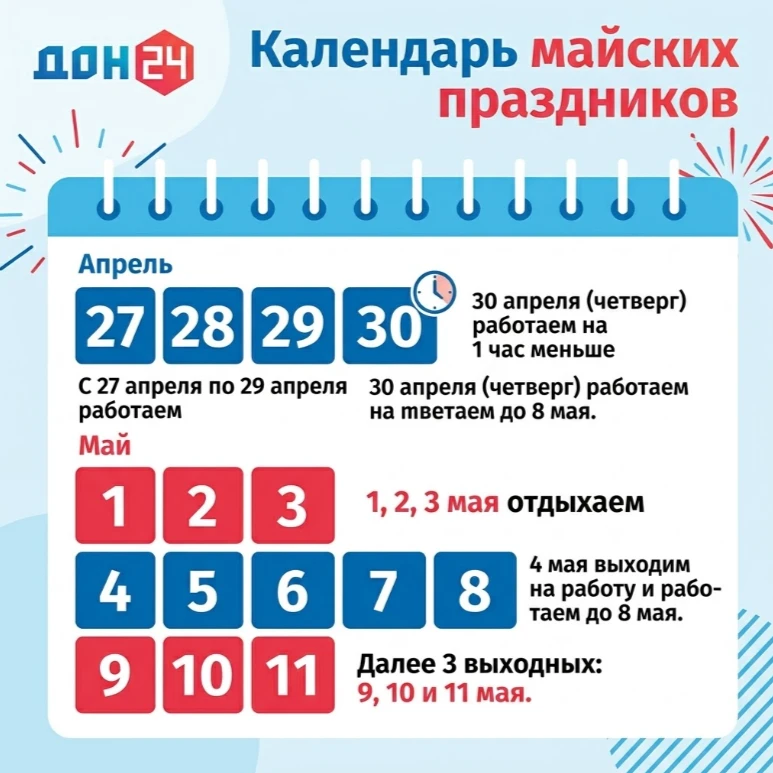 30 апреля, четверг, — сокращенный рабочий день.