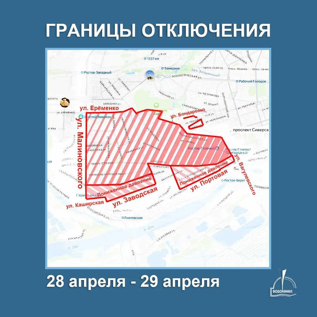 Ресурс отключат с 09:00 28 апреля до 05:00 29 апреля: от Левенцовки до Ж/Д вокзала. Подробнее в фото.