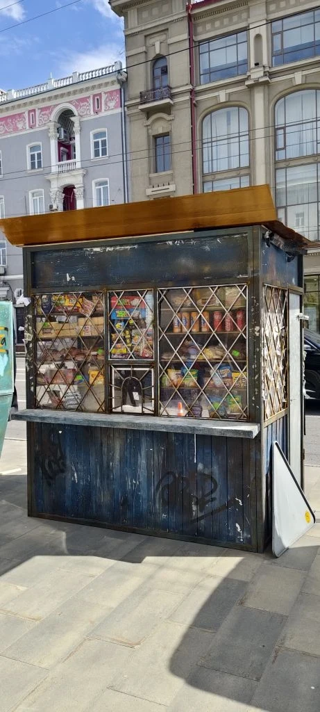 В качестве антуража использовали 2 торговых ларька с товарами тех лет, старые авто.