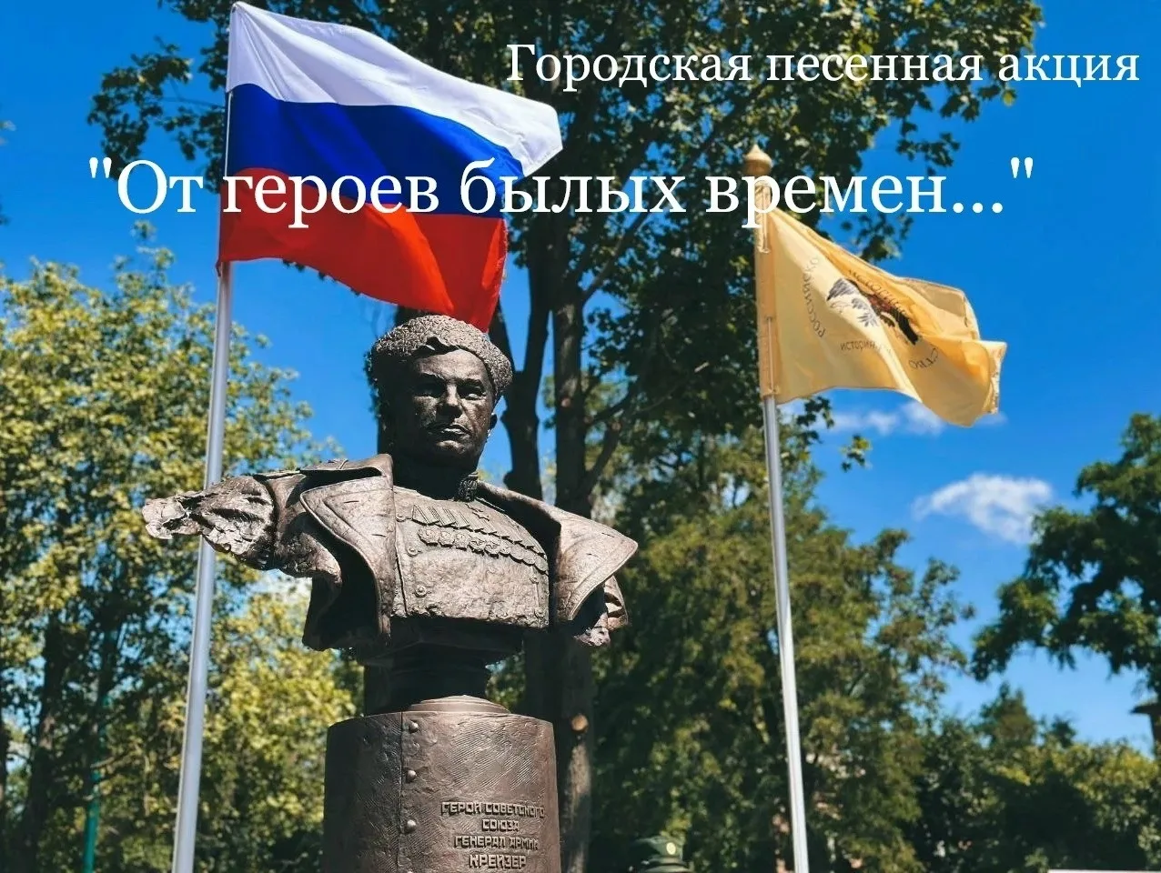 Городская песенная акция предлагает хоровым коллективам и солистам исполнить песню «От героев былых времен» у памятника защитникам Отечества в знаковом месте Новочеркасска.