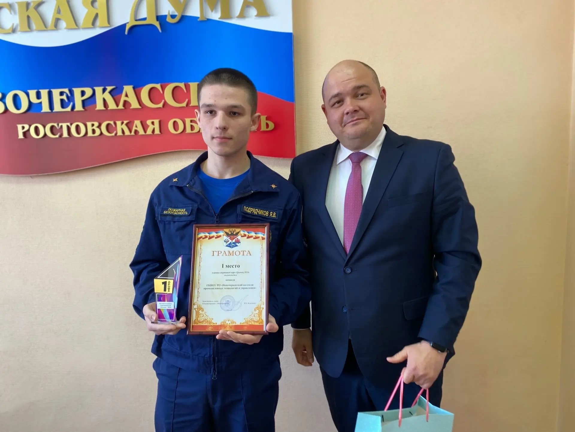 Победителей командного зачета награждал заместитель главы Администрации города Новочеркасска Иван Клименко: «Это не только спортивные соревнования, но и тест на знание истории нашей Великой Победы, событий, в которых наша страна принимала участие и героически победила. Я уверен, что ваши сверстники могут брать с вас пример, и вы и дальше будете активно участвовать в жизни города. Вы большие молодцы! Так держать! Успехов не только в спортивных мероприятиях, но и в учёбе, и в жизни!»- обратился к участникам Иван Клименко.