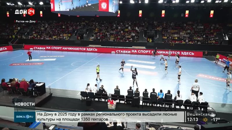 Ростовская область, 26 января 2026. Телеканал «ДОН 24». Гандбольный «Ростов-Дон» добыл 18-ю победу в чемпионате страны. На площадке Дворца спорта подопечные Ирины Дибировой обыграли «Астраханочку». Так, в первые полчаса хозяйки заставили своих фанатов понервничать, уступив соперницам со счетом 12:13. Но уже во втором тайме ростовчанки полностью забрали инициативу в атаке, а броски по нашим воротам раз за разом отражала Анастасия Казьменко, на ее счету 50 процентов спасений. Как итог – 36:22 после часа игры.