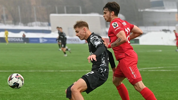 Команды долго играли на равных, блокировали все попытки нападающих прорваться к воротам. На 34-й минуте после затяжной атаки и навеса в штрафную номинальных хозяев Глотов точно пробил в дальний угол -1:0.