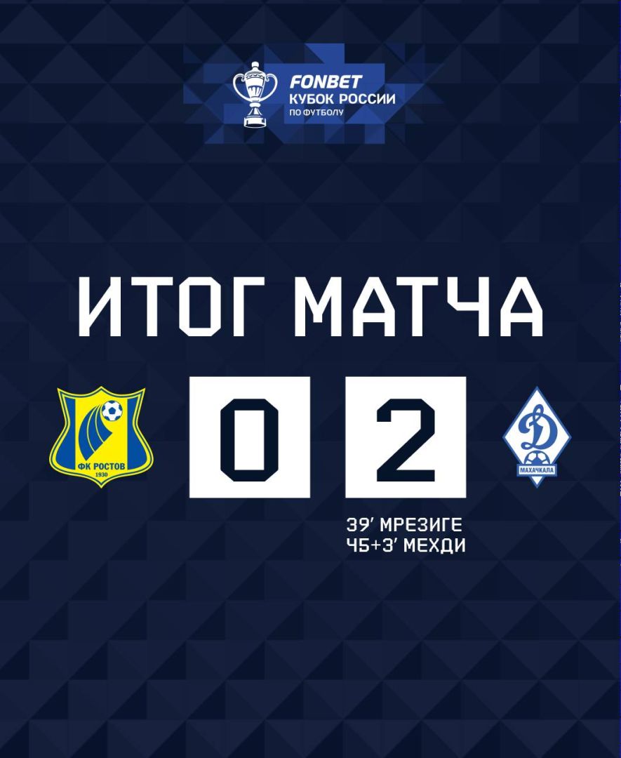 04.03.2026, /=РО=/ФК «Ростов» не прошёл в следующий этап Пути регионов Кубка России. Ростовская команда проиграла ФК «Динамо» (Махачкала) со счётом 0:2. Об этом сообщает пресс-служба ФК «Ростов».