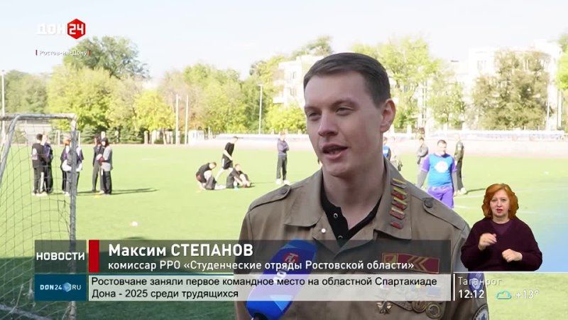 Ростовская область, 30 сентября 2025. Телеканал «ДОН 24». Более 10 команд студенческих отрядов из разных вузов области приняли участие в региональном этапе спартакиады. Программа включает 8 видов спорта, в том числе волейбол, плавание...