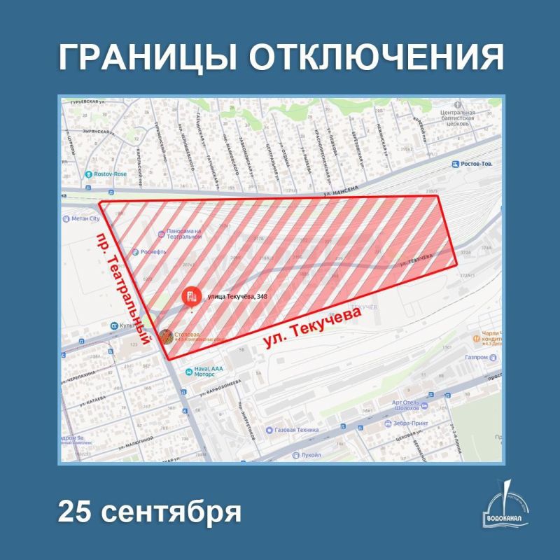 Завтра с 8:00 до 22:00 — в границах Текучёва и Театрального (первая картинка). И с 9:00 на целые сутки пропадёт вода на Западном (вторая и третья картинка).Подписывайся на Don Mash