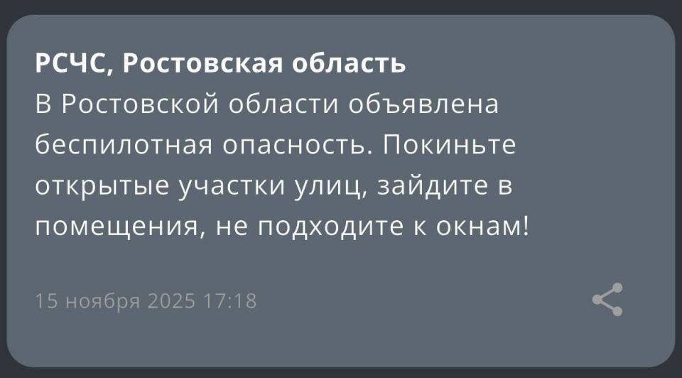 17 украинских беспилотников сбили над Ростовской областью с 19:00 до 23:00, сообщили в Минобороны. Подписывайся на Don Mash// Don Mash