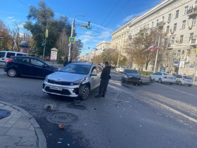 Два легковых автомобиля не поделили перекресток возле здания областного правительства. Пострадавших нет.Фото: «Молот».