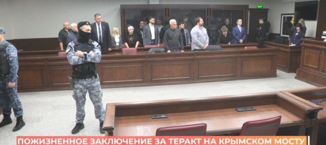 Пожизненное заключение. Разве можно назначить меньшее наказание виновным в подрыве Крымского моста в октябре 22-го?! Приговорили их сегодня - в Южном окружном военном суде. Наша съемочная группа работала в зале.