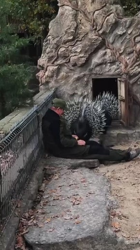 На кадрах животные «общаются» с кипером. Только посмотрите, как эти грозные на вид зверьки подходят за лакомством к сотруднику парка.Видео: парк «Малинки».«ДОН 24»