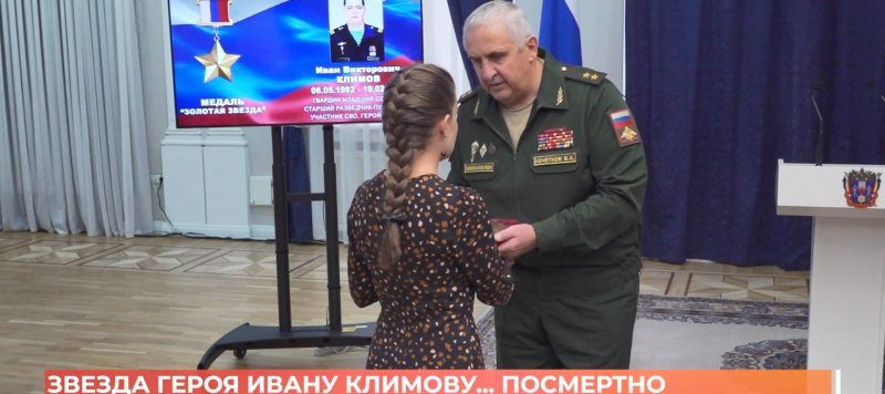 Ростовская область, 2 октября 2025. Телеканал «ДОН 24». Быть воином – значит жить вечно. «Золотую звезду» Героя России, присвоенную Ивану Климову, вручили вдове Юлии Климовой. Ценой собственной жизни боец спас своего командира....